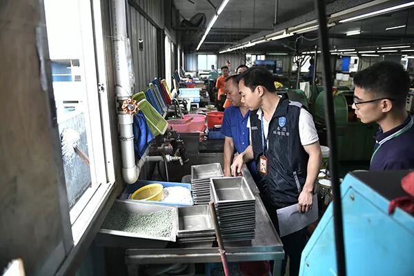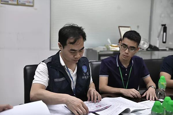 同时,还深入企业生产车间,检查污染工序、处理设施等情况,经检查,未发现企业有偷排、直排等情况,但存在环保处理设备不符合标准,以及管理有待规范等问题,执法人员现场要求企业落实整改。